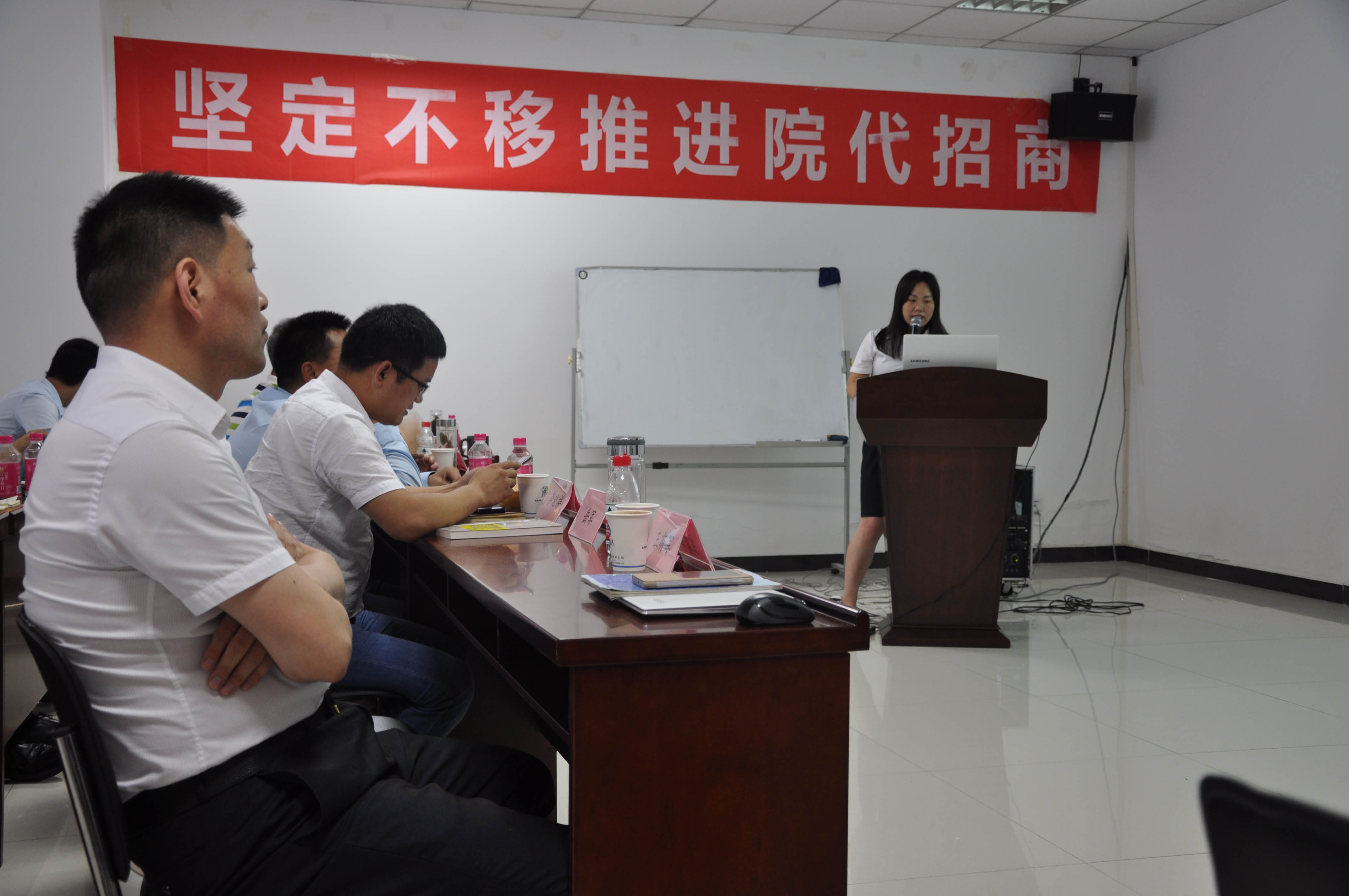 王总在会上认真总结公司上半年的营销工作,通过分析上半年全国市场销售状况,针对2018年是公司医院开发年和学术推广宣贯年,要从产品规划、行动策略、执行细则、结果考核等方面全面贯彻,全面推进市场发展。在下半年的工作中要以“院代招商,学术落地”为主线,全面推进产品的推广和既定销售指标的完成。并指出要在经营模式、后台保障、终端管理、商务保障、学术落地、激励到位、考核到位七个方面保证分解指标的全面完成,为荣誉、命运和信念而战。
